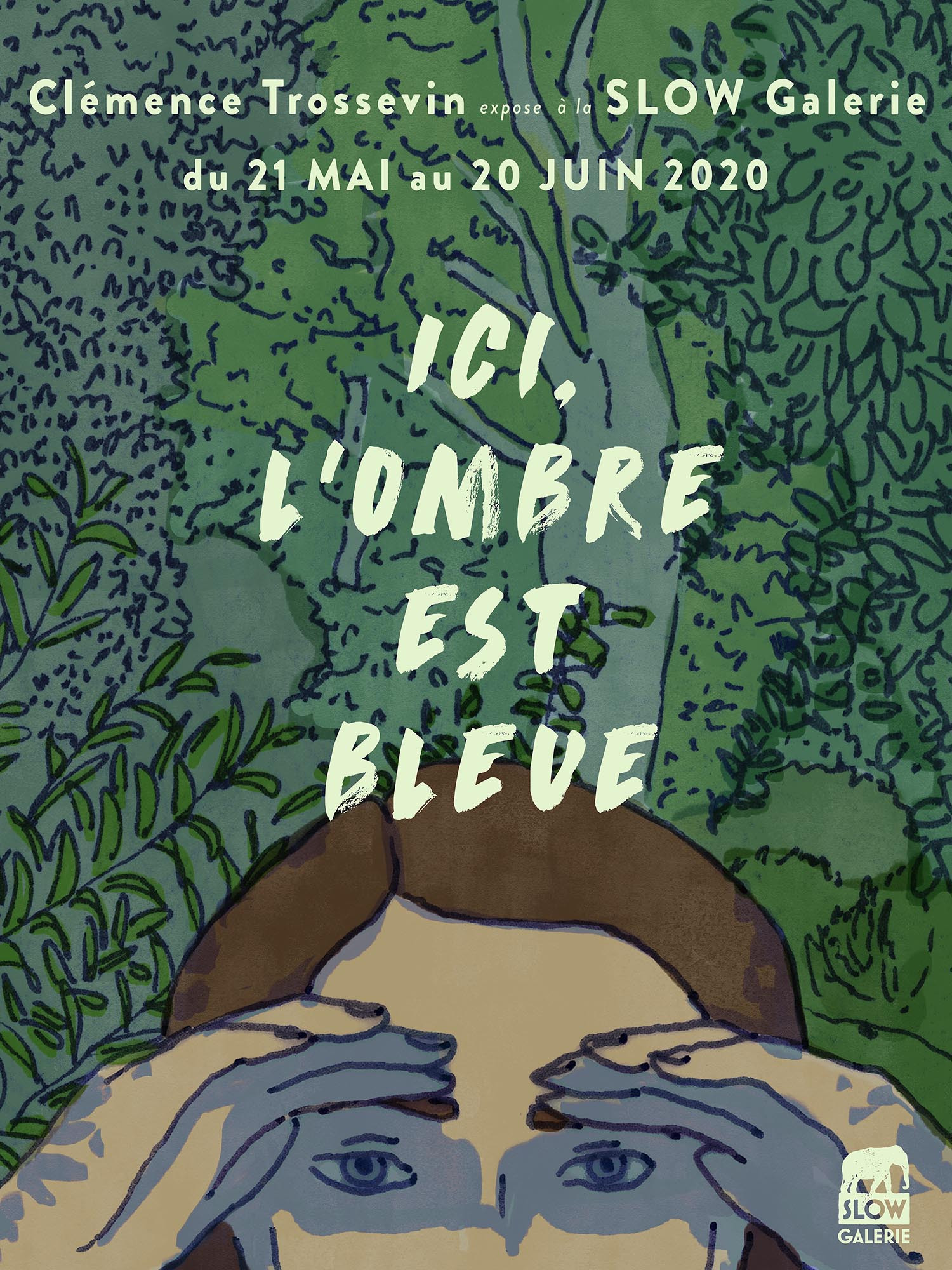 Poster for the exhibition "Ici l'ombre est bleue" by Clémence Trossevin LA SLOW ILLUSTRATIONS
