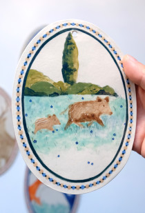 A graduate of the Estienne School and the Sorbonne School of Arts, Floriane Saint-Sébastien works between Paris and Seine-et-Marne where her ceramic workshop is located. Floriane draws, paints and shapes a fanciful universe in which bears and geese are the guests of happy birthday tea parties. With delicacy and poetry, she paints portraits of undulating…