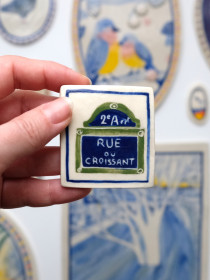 A graduate of the Estienne School and the Sorbonne School of Arts, Floriane Saint-Sébastien works between Paris and Seine-et-Marne where her ceramic workshop is located. Floriane draws, paints and shapes a fanciful universe in which bears and geese are the guests of happy birthday tea parties. With delicacy and poetry, she paints portraits of undulating…