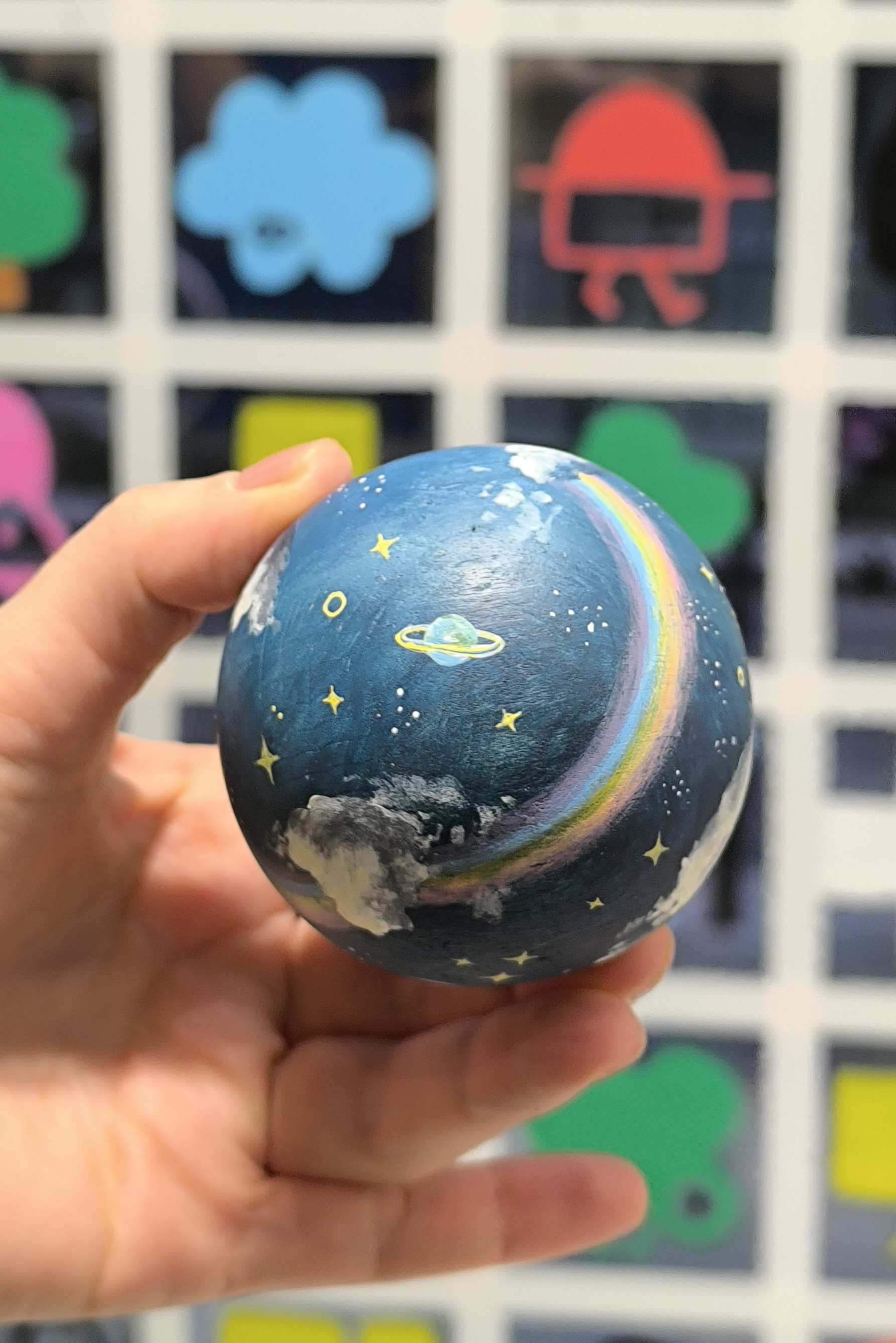 Acrylic paint on beech wood ball