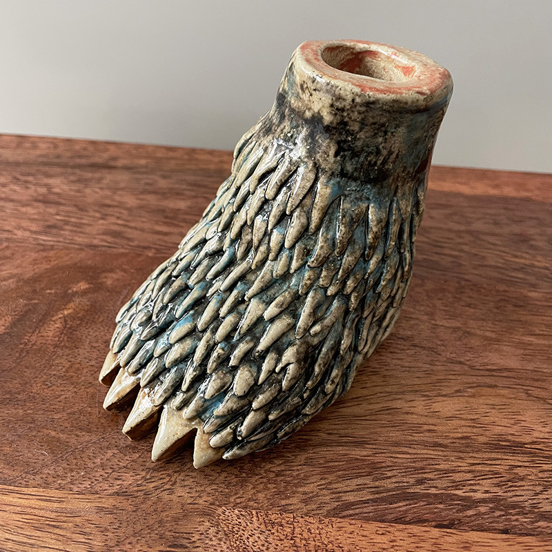 Continuing her practice of engraving and painting, Marie-Anne Briskmann has found in ceramics a new, sensitive language in which to model her "curiosities". Her subjects—contemporary talismans, lucky charms, paws, heads, wolves and rabbits, "inhabited garments", messenger doilies, imaginary herbariums—possessing a feigned ingenuity, combine the…