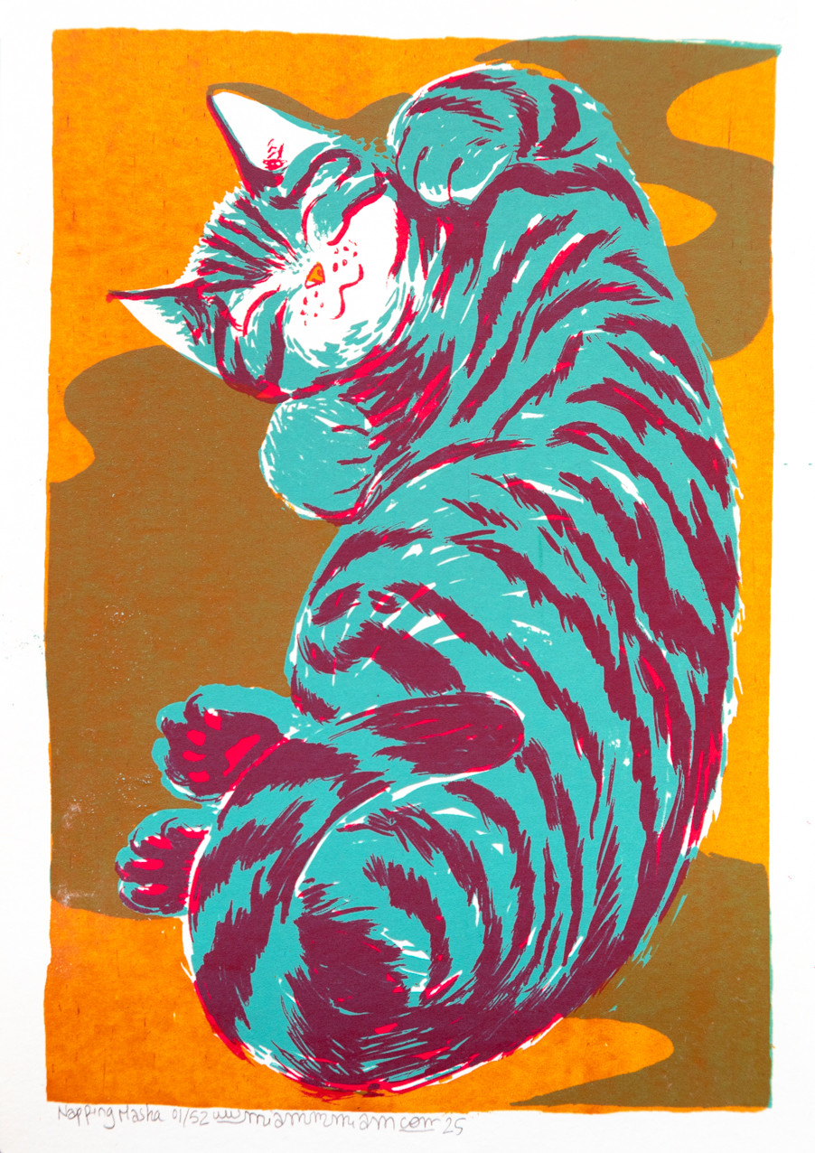 Miammmiam is a french illustrator and artist, living in Berlin and born in the 80's. Her digestive line swings between sensuality and morbid fascination. Often continuing past the borders of the paper, her drawing overflow and fill the skin of walls ending in continuous flows of images. Since 2010, she is using hand made silk-screen printing, from the…