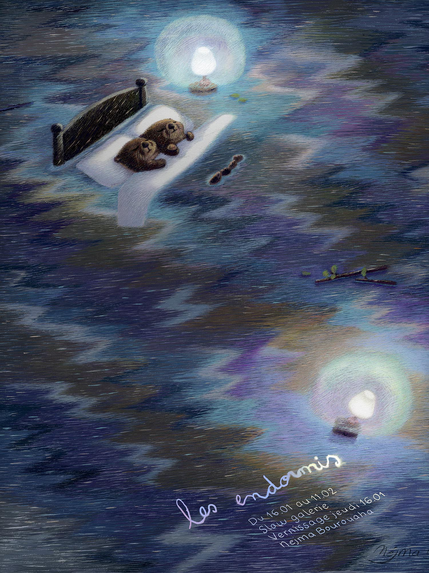 Gouache and pointed brushes, forests and bushy animals. Nejma Bourouaha draws harmless stories with an amused eye for the zany everyday life of her imaginary forest. A graduate of the Ecole Emile Cohl in 2007, her work is inspired by Russian illustrations and impressionist colours. Her comforting images bear the traces of her childhood reading. In January…