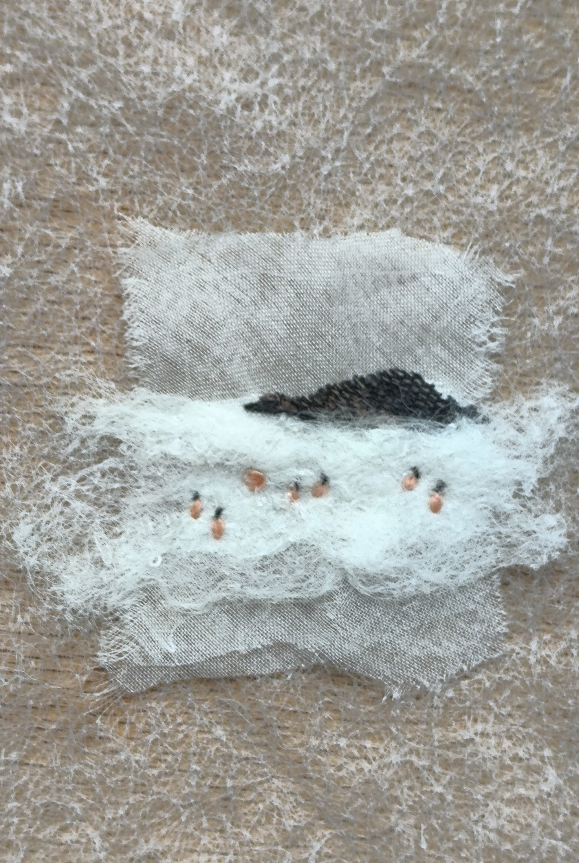 Broderie sur mousseline de coton et tissu, format de la mousseline environ 10x10 cm